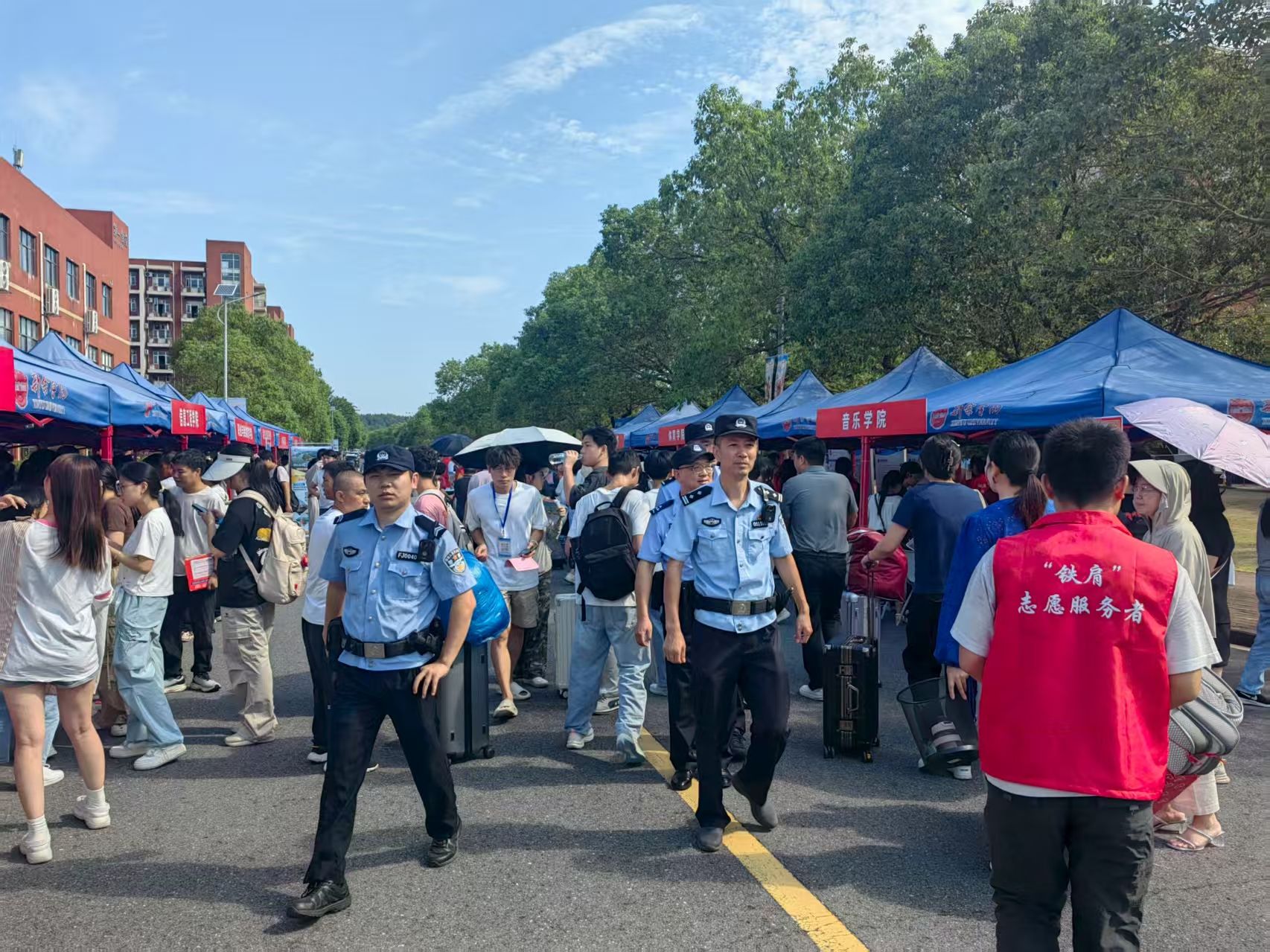 周全做好服务保障工作。新生报到这两天,确保了校园道路安全畅通,车辆停放有序,引导超过3000辆车次进出校园;强化警校协同联动,属地民警入驻校内执勤,物业公司增派20多名保安到各路口值守,有效扩充迎新安保队伍;提前发布开学安全和交通指南。全体安保人员恪尽职守,无惧烈日,坚守岗位,服务不停。
