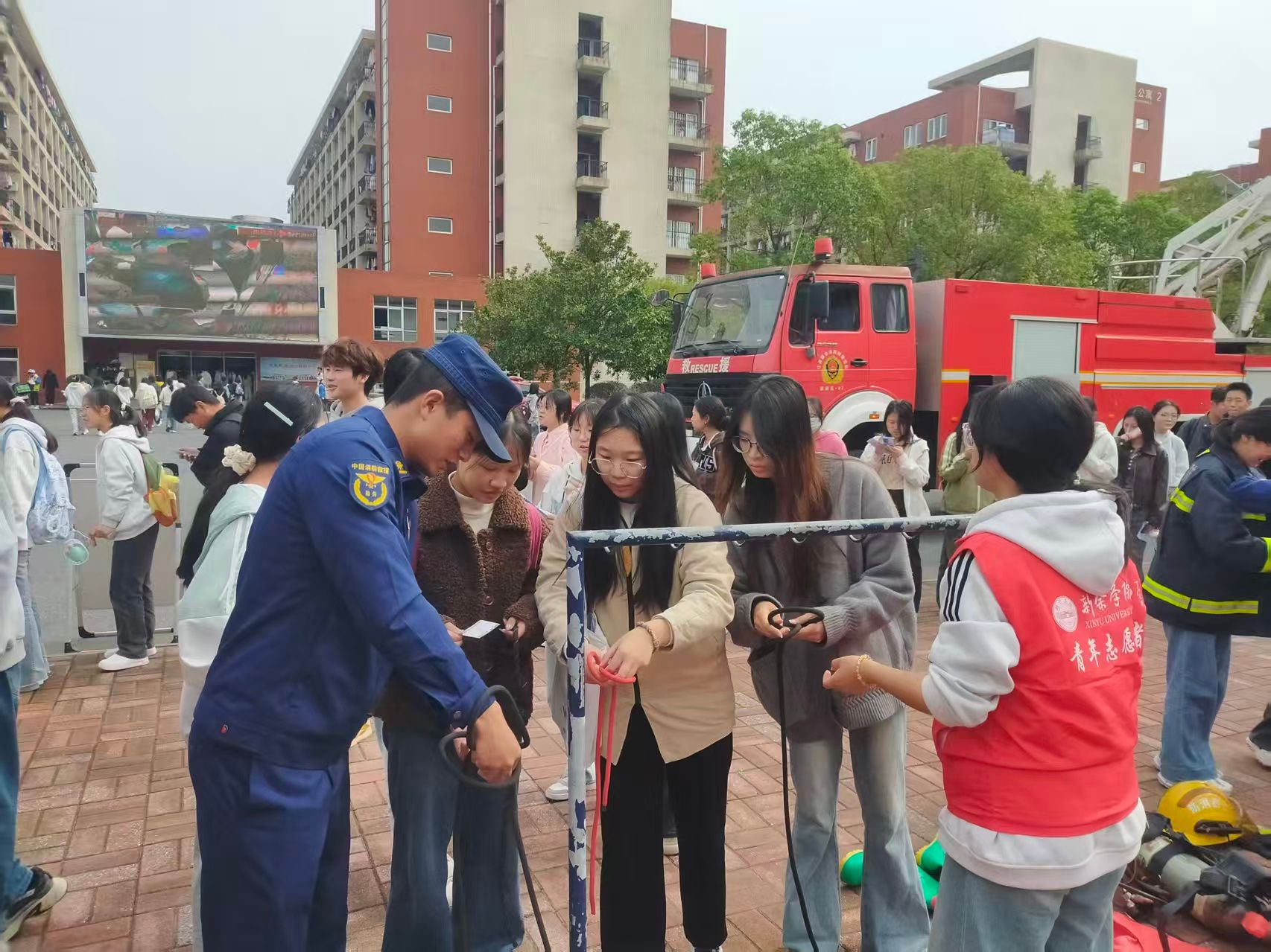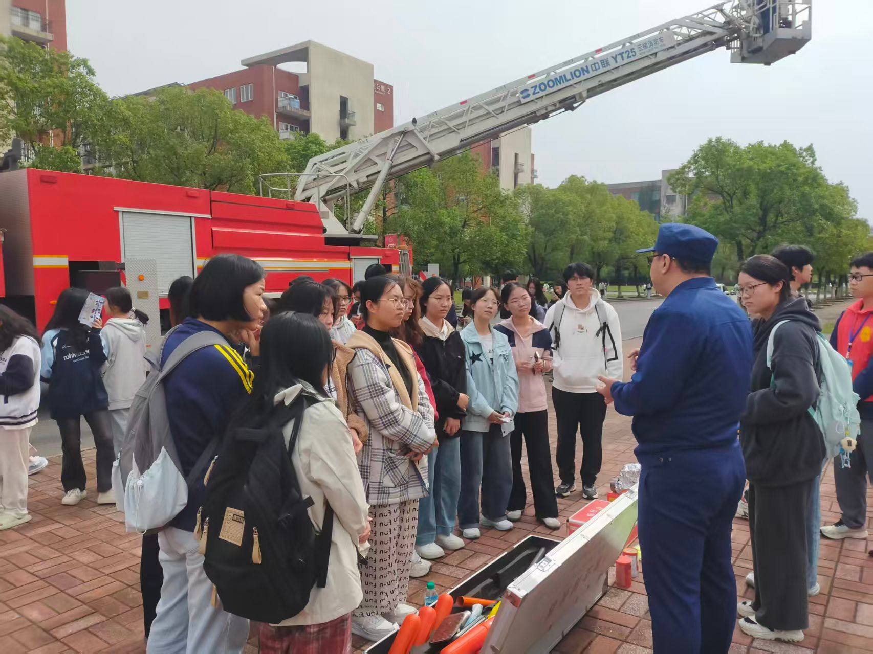 宣传活动以形式多样的沉浸教育方式展开,内容包括佩戴消防自救式呼吸器、学结消防救援绳、体验云梯消防车、试穿灭火战斗服和消防员讲解火灾预防、如何扑救初起火灾、如何科学逃生自救等消防知识。现场还发放了600份消防宣传册,通过设置趣味答题、模拟火灾现场疏散逃生体验、灭火器和消防水带体验和抽取小纪念品活跃氛围,让大家在沉浸式体验中潜移默化接触消防、认识消防、学习消防,切实提升预防、应对火灾的意识和处置技能。