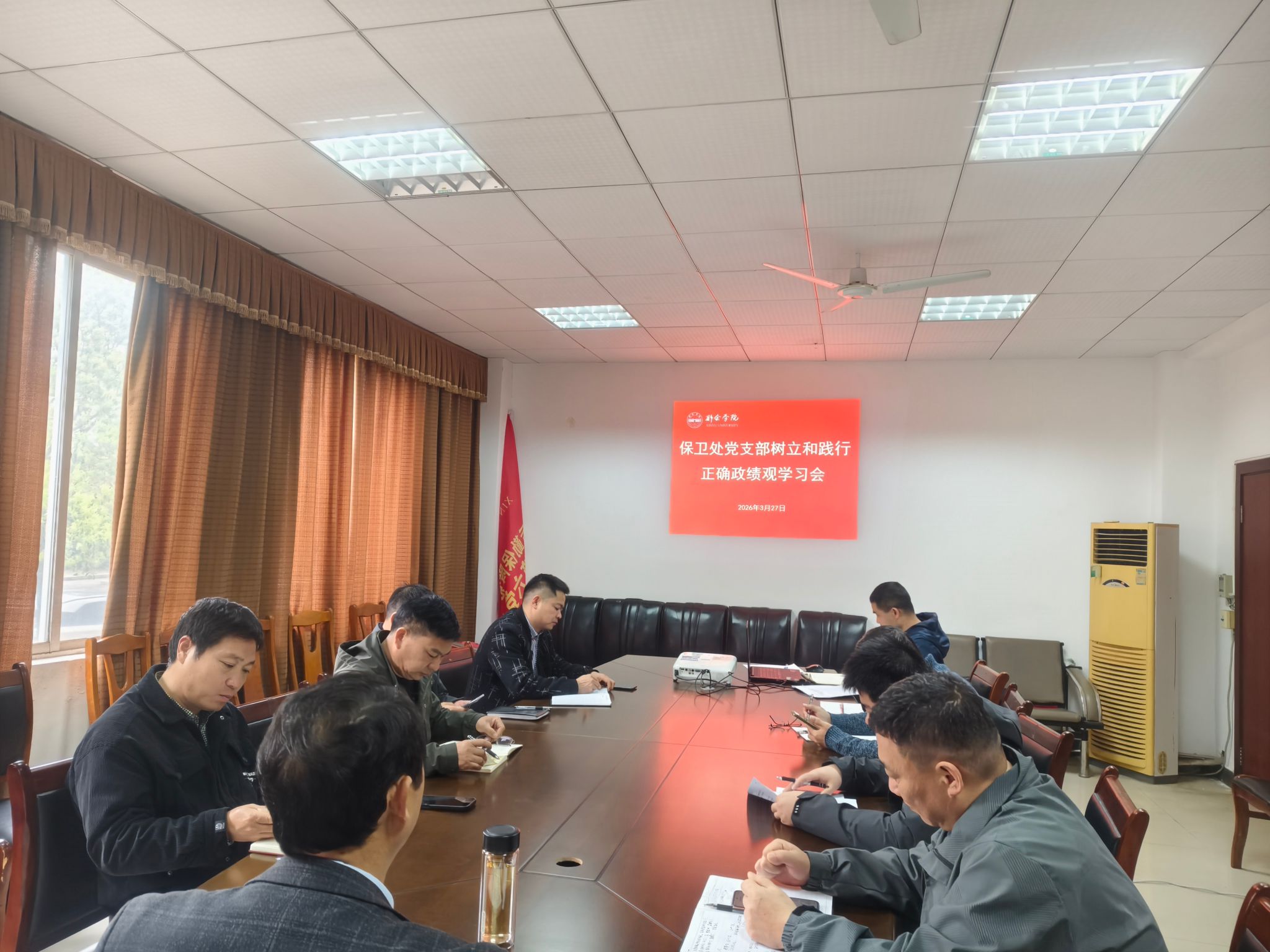 3月27日,保卫处党支部在处会议室开展树立和践行正确政绩观学习教育,全处人员参加会议。